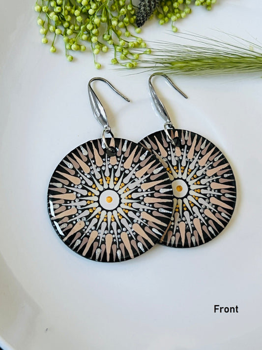 Hand-painted Dot Mandala Earrings - Resin Coated Boho Jewelry for Mother and Friends - anniversary and birthday Gift For her