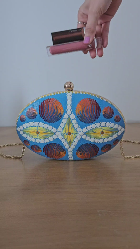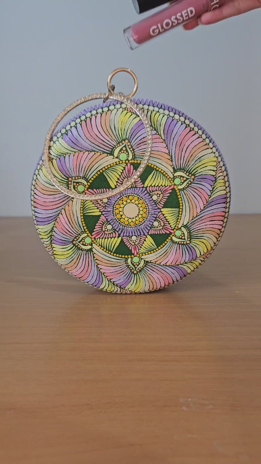 Dot Mandala Hand-painted Modern Party Clutch Sling Bag with detachable Golden Chain - Gift for her and for Mother's Day