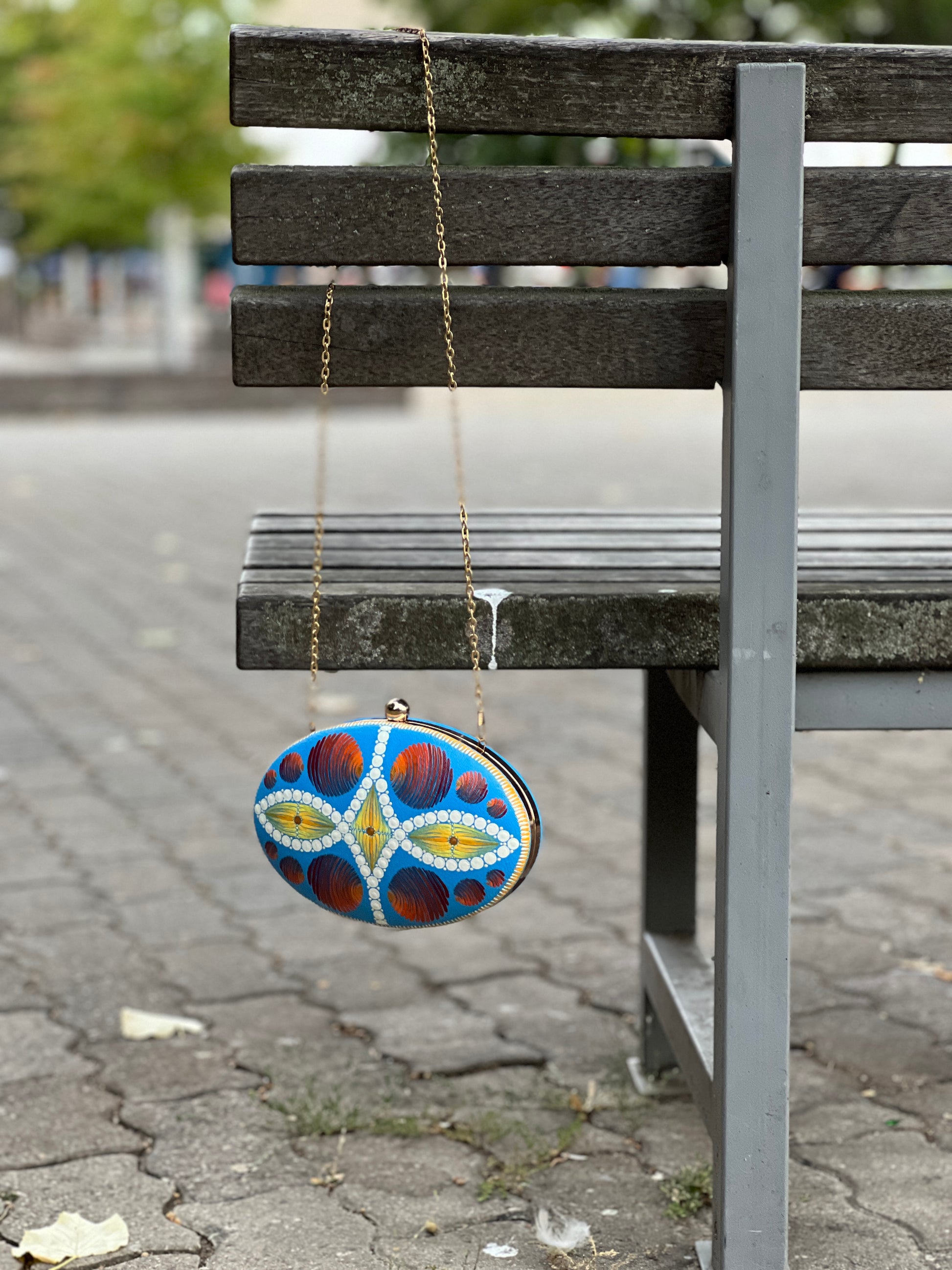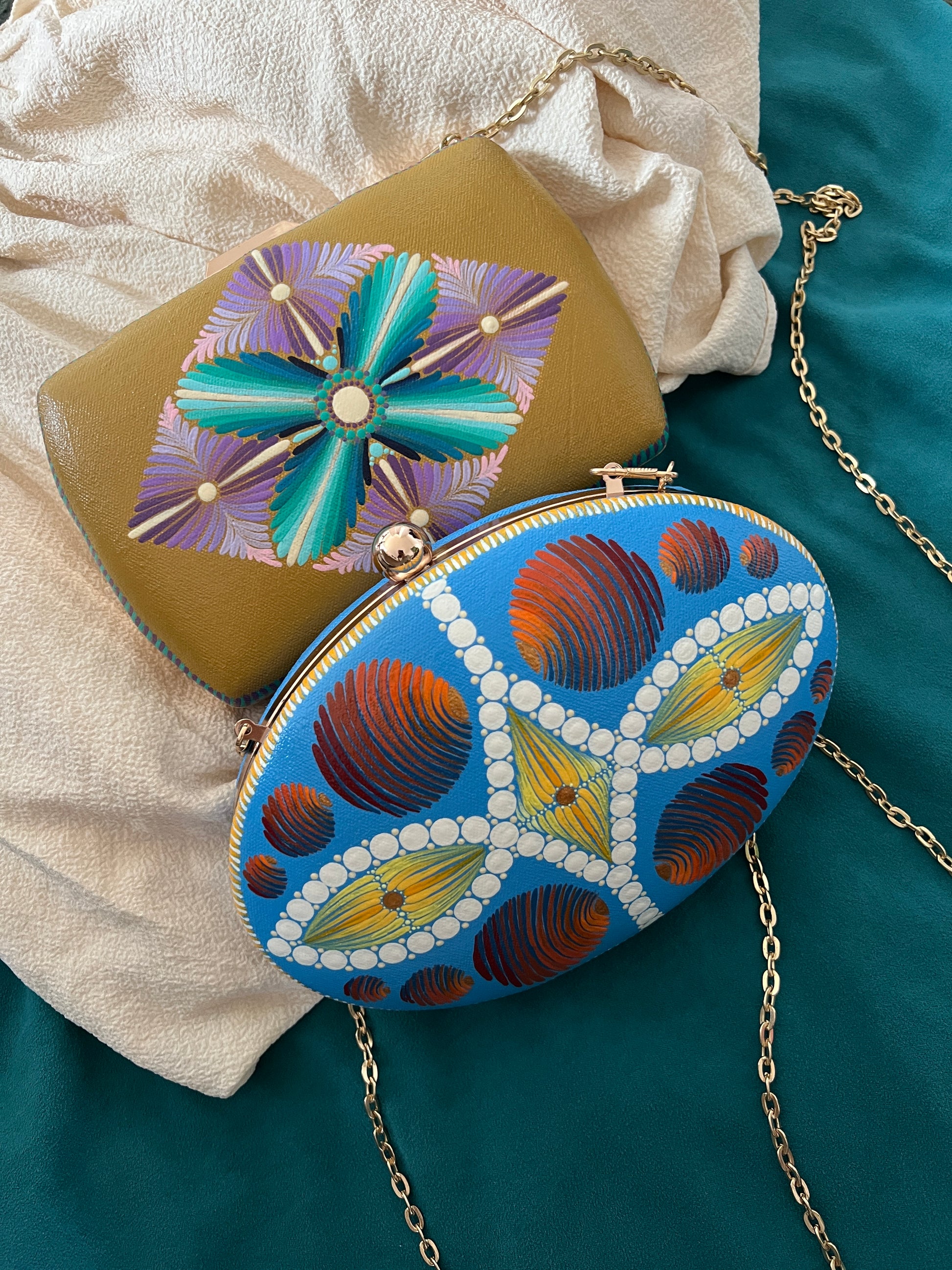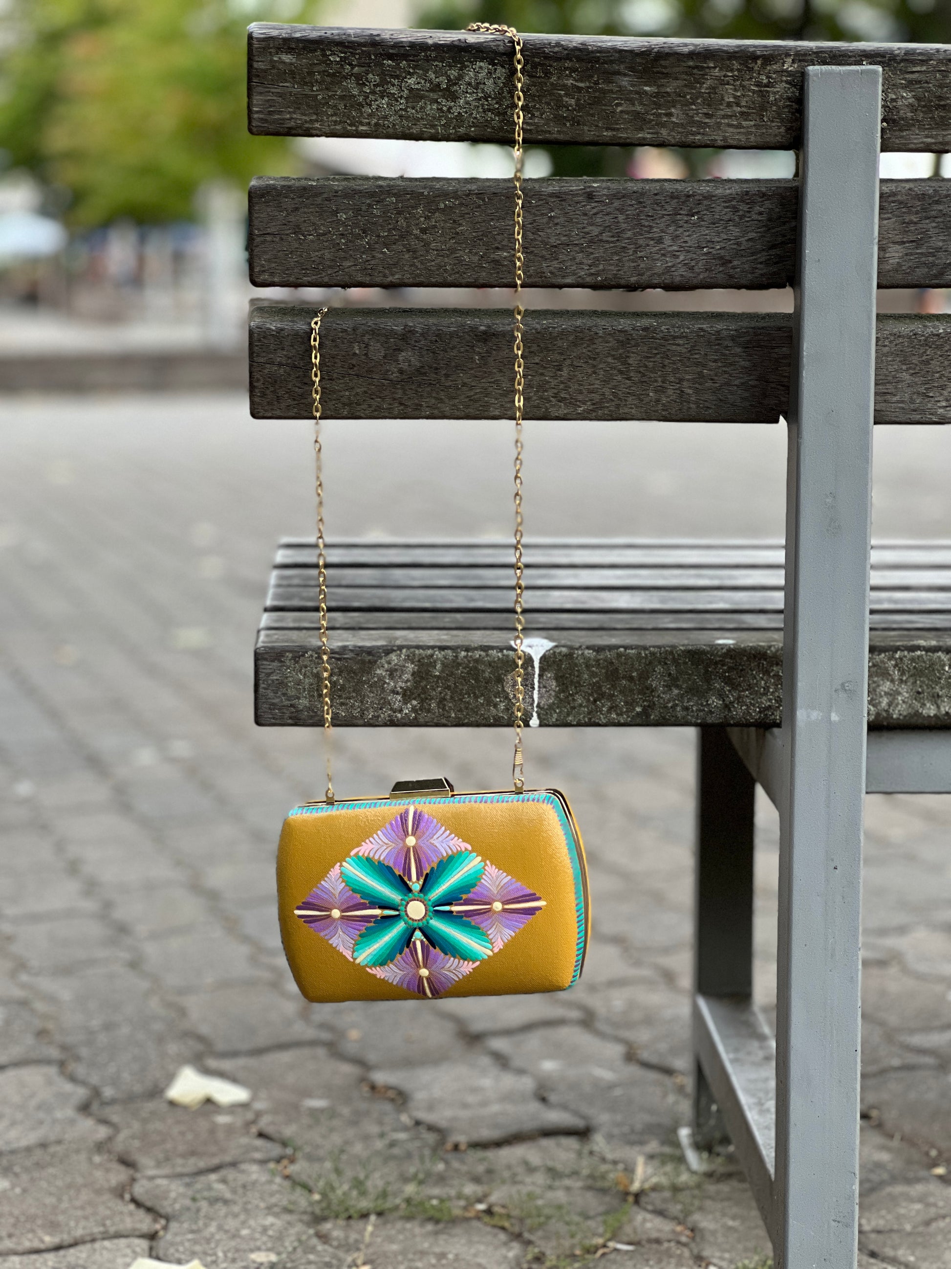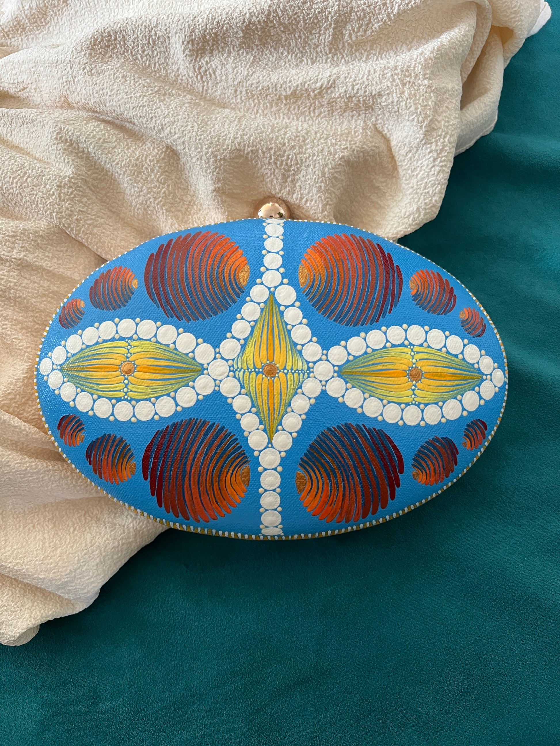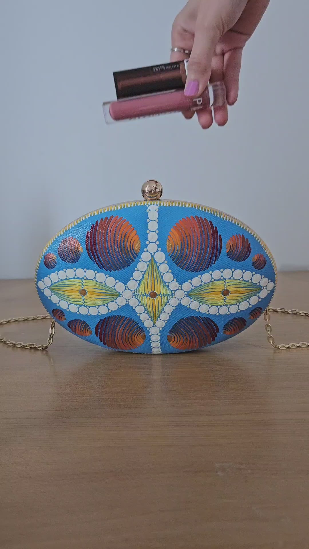 This clutch is beautifully hand-painted and in great quality. The colours are vibrant. It shows the amount of care and creativity put into this work.