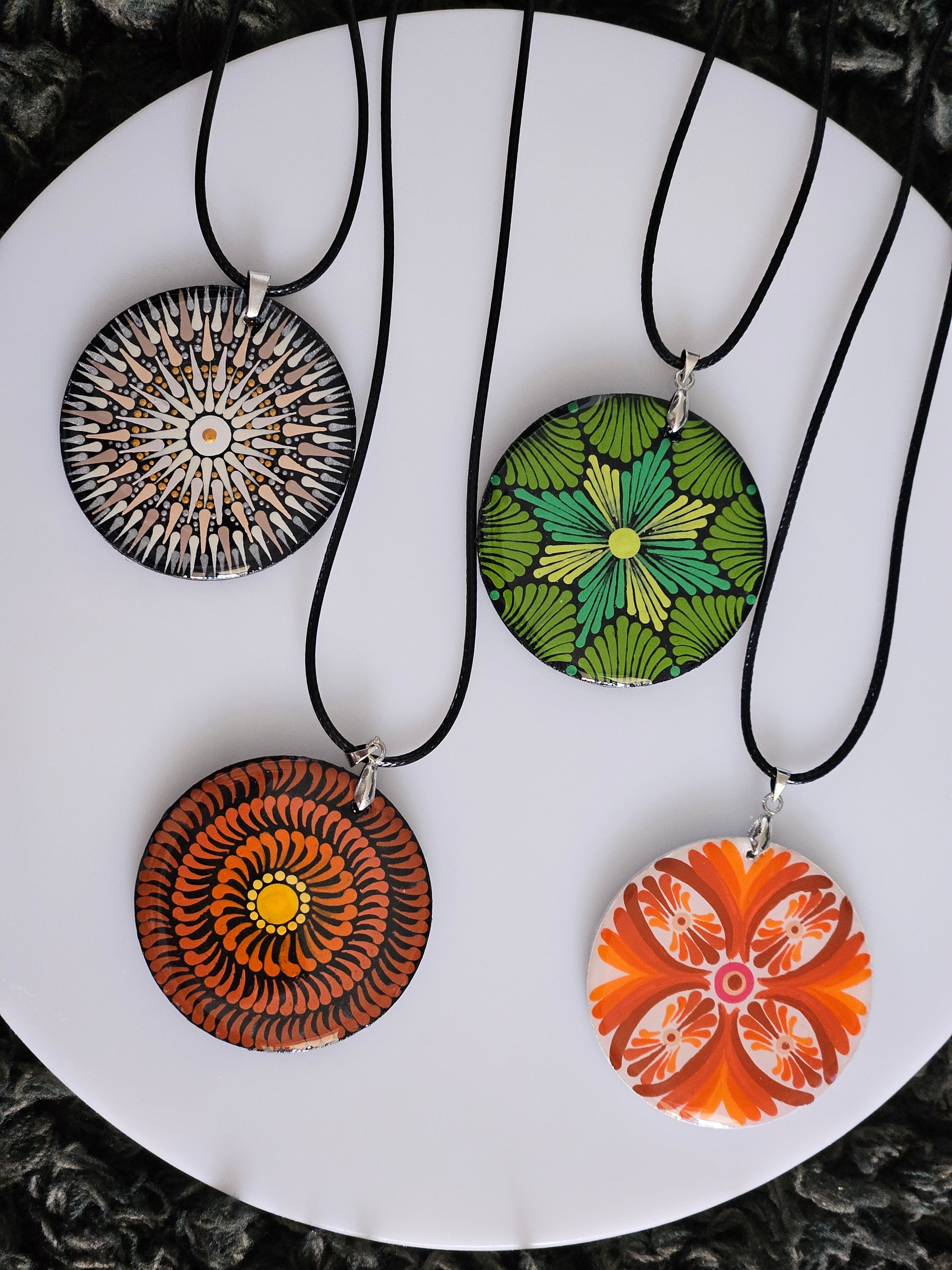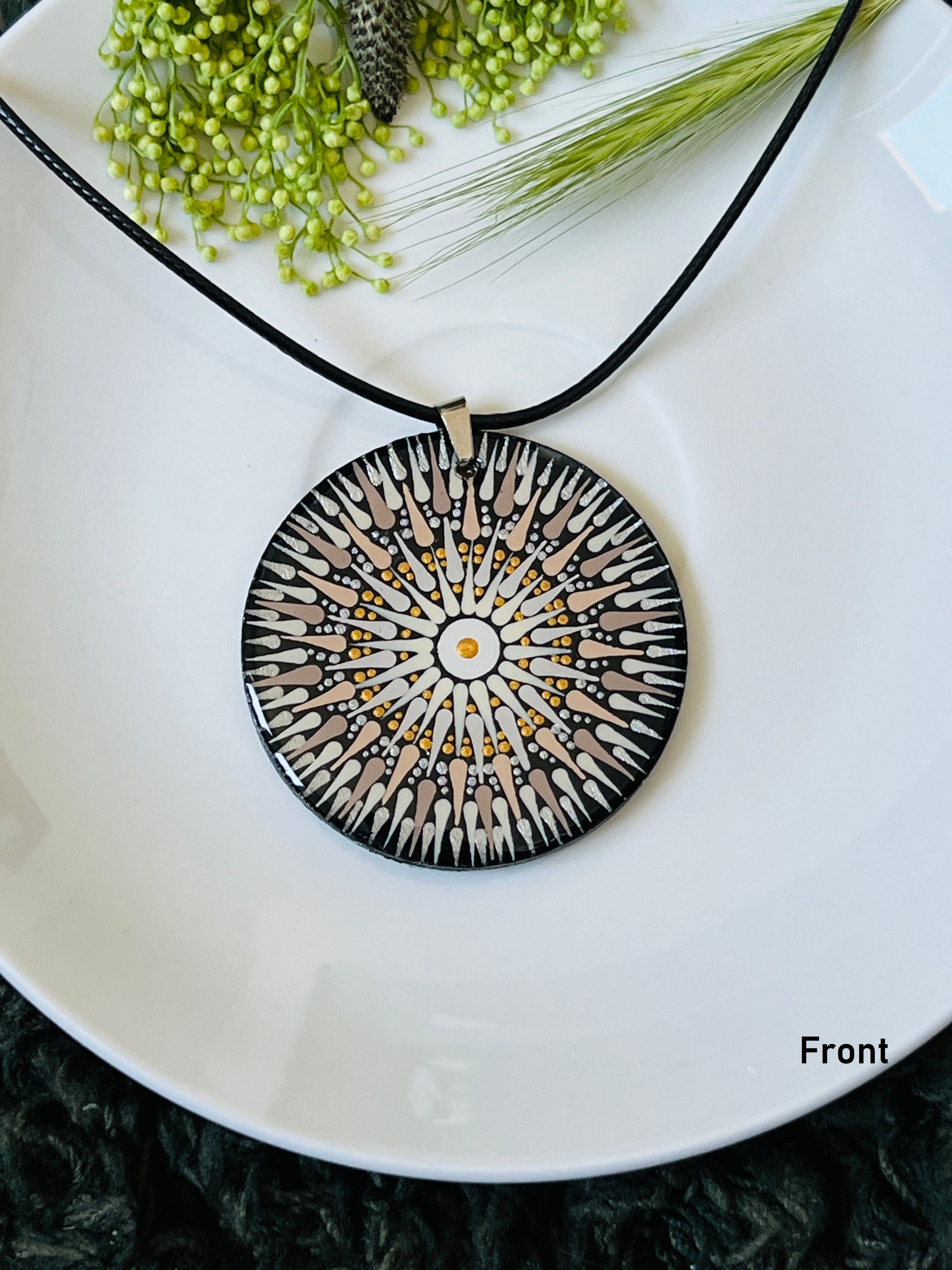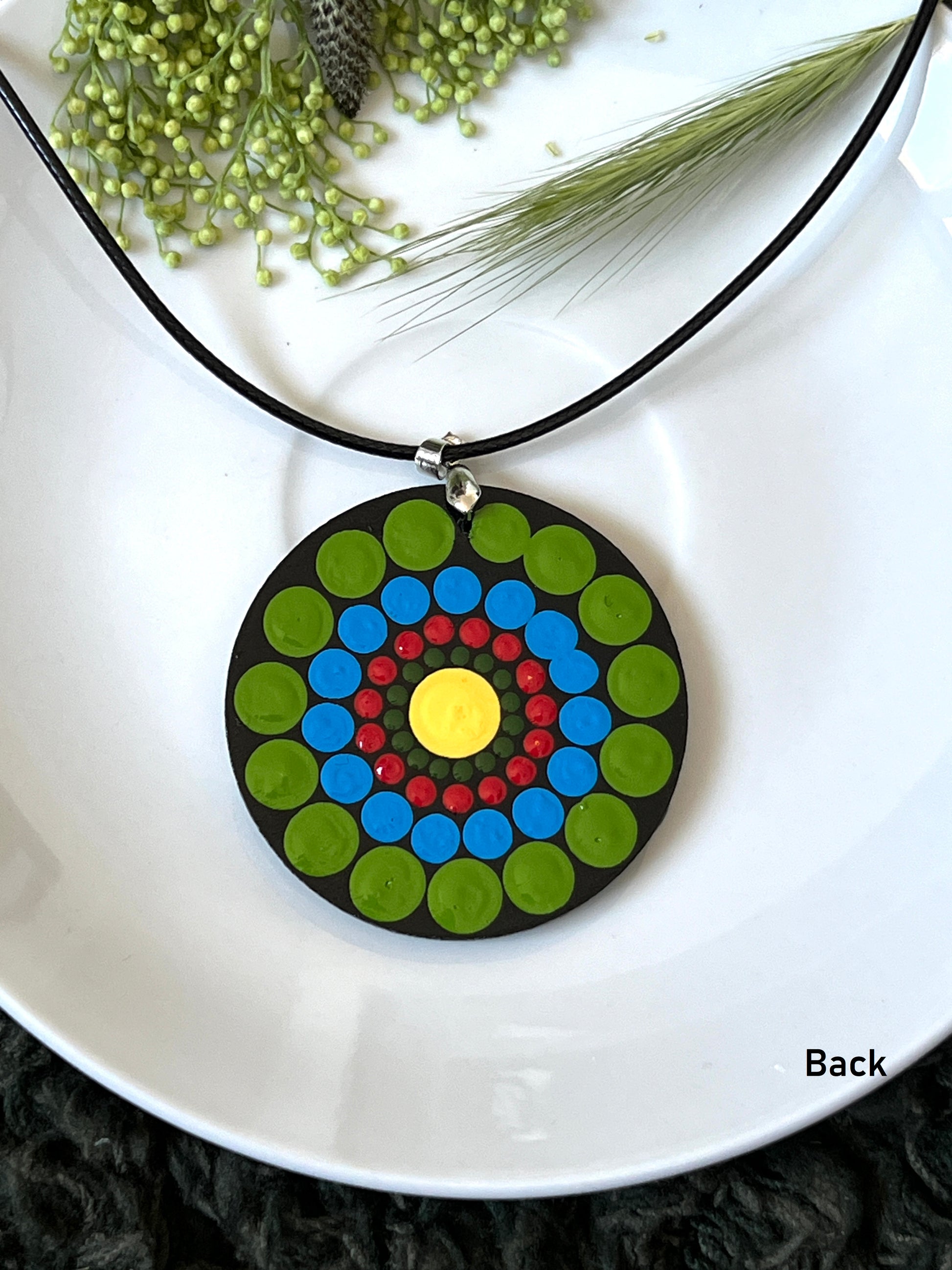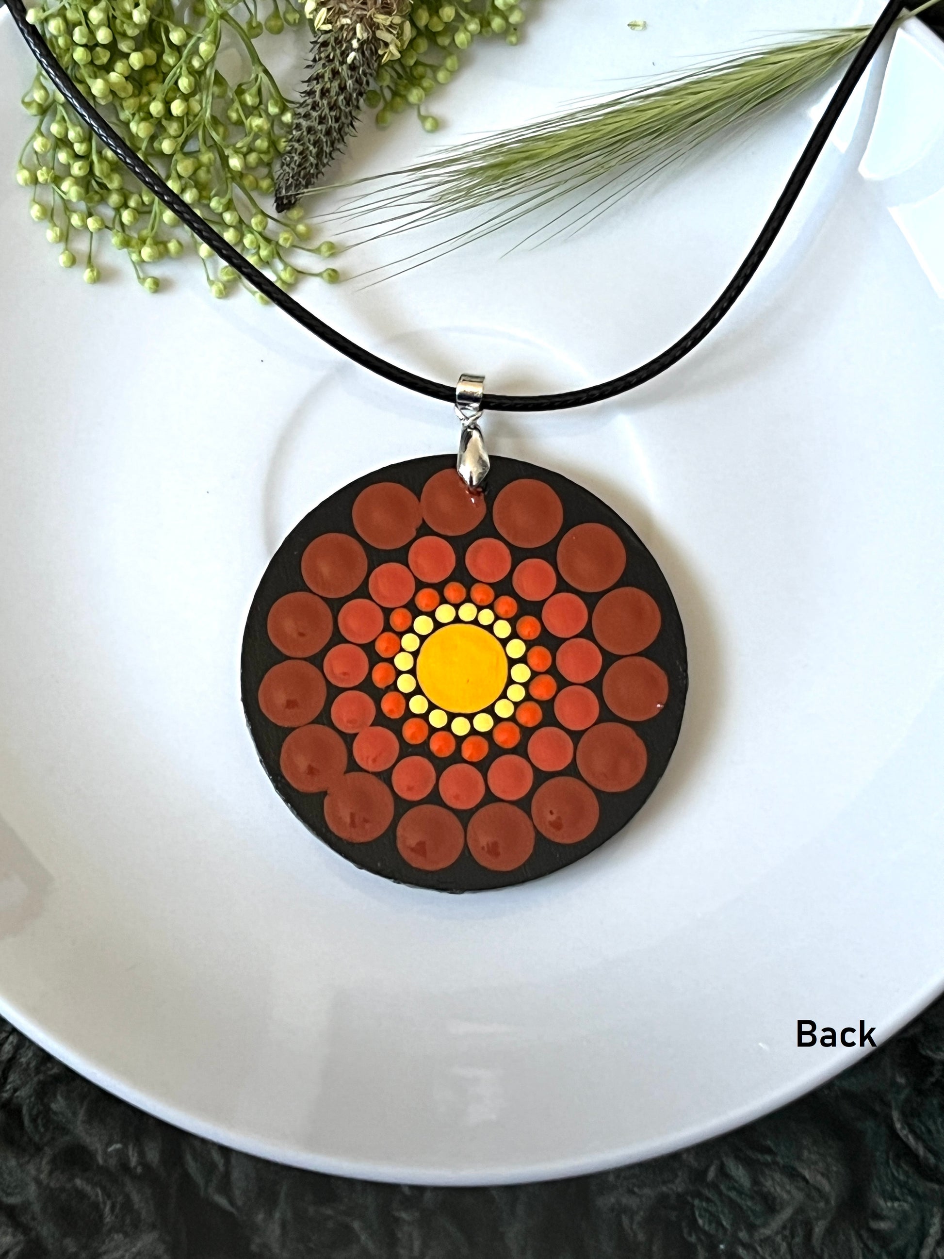 Hand-painted Dot Mandala Pendant - Resin Coated Boho Jewelry for Mother and Friends - anniversary and birthday Gift For her